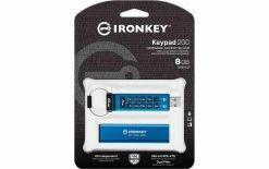 Capacité de mémoire totale: 8 GB, Cryptage du stockage des données: 256-Bit-AES, Couleur de détail: Bleu, Interfaces: Type-A USB 3.0 (3.1 / 3.2 Gen. 1), Forme du périphérique mémoire USB: Standard, Matériau: Non spécifié