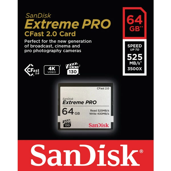 SanDisk CFast Carte 2.0 ExtremePro 64 GB 525MB/s – Cartes Mémoire
